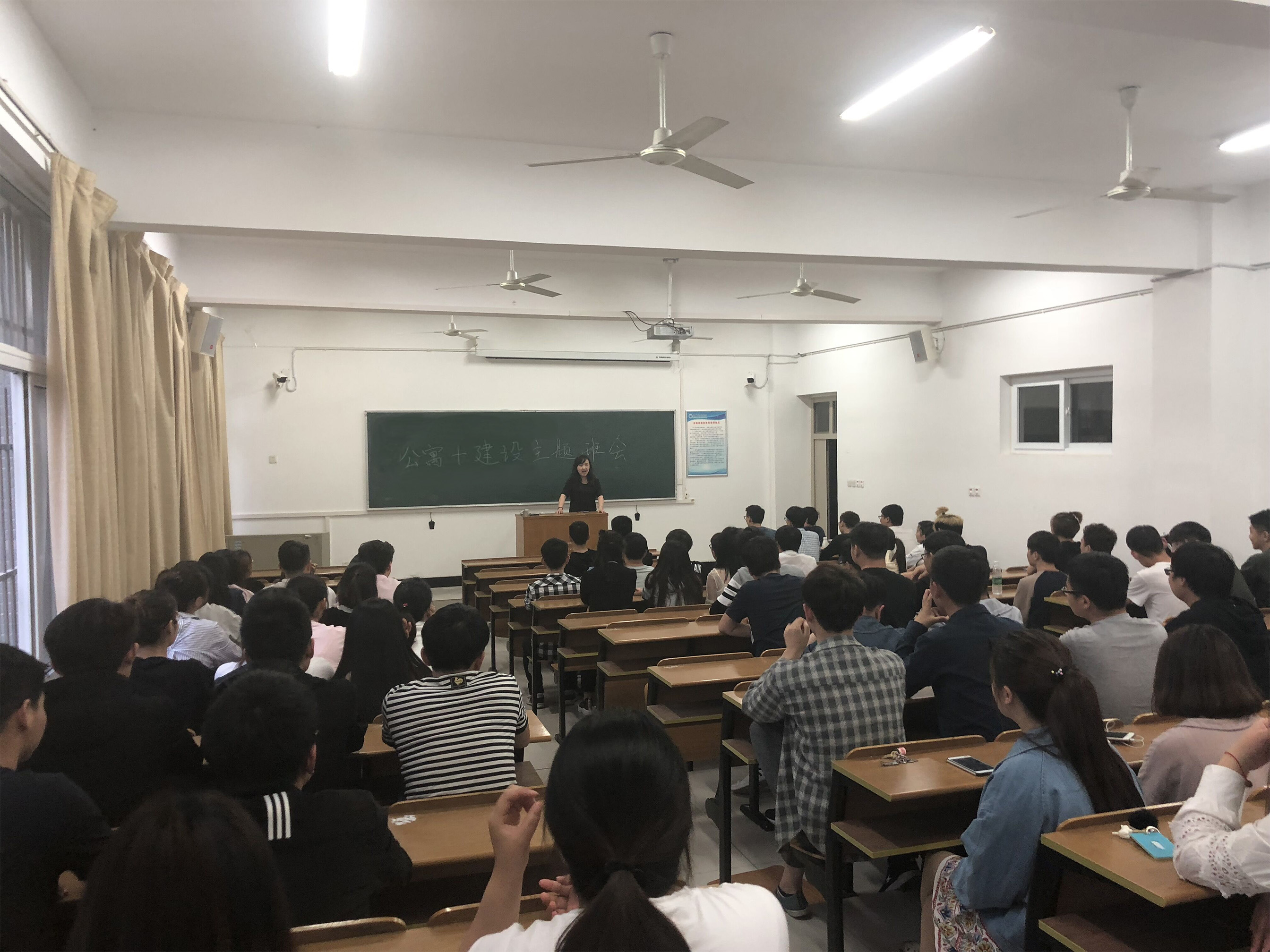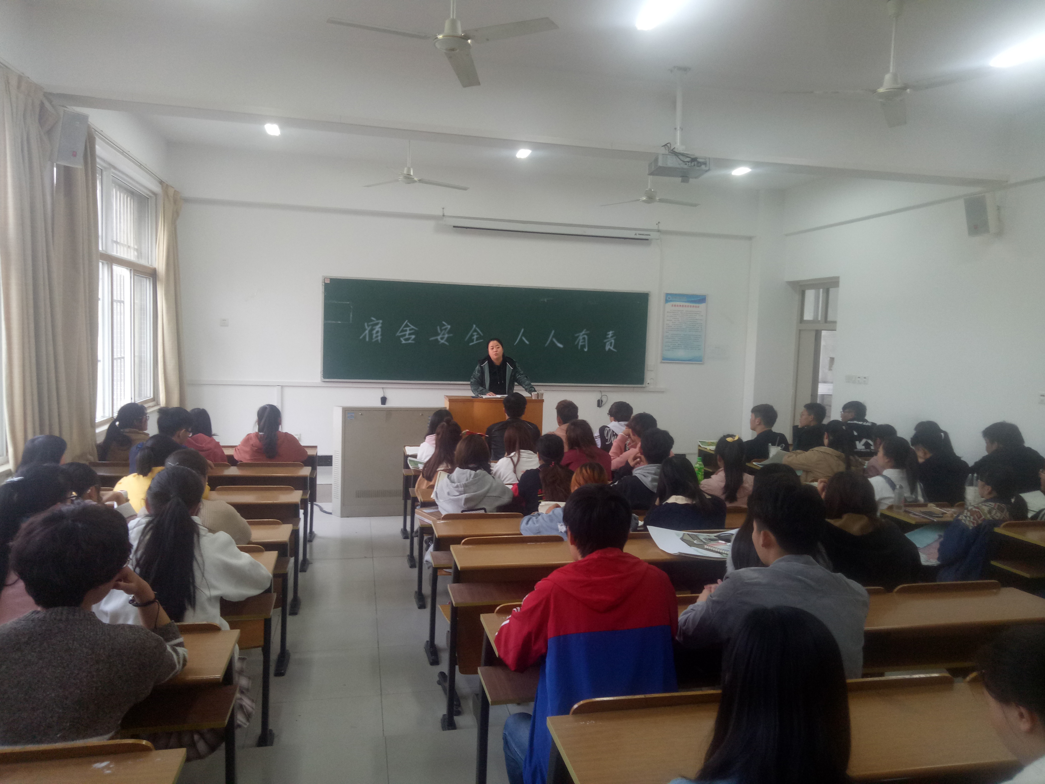 各班级召开主题班会,围绕“公寓+安全”、“公寓+文明”主题从宿舍用电安全、个人财产安全、垃圾袋装化、争创文明寝室等方面为主要班会内容,通过主题班会,使学生们系统的了解公寓安全知识,提高了学生们公寓文明意识,掀起争创文明宿舍的评比热潮。