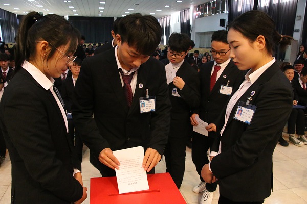 在当天下午14点30分进行的大会第二次全体会议上,大会以无记名投票方式,差额投票选举产生了beat365网登学生会第四届委员会委员,李勇、武亚然等28人成功当选。