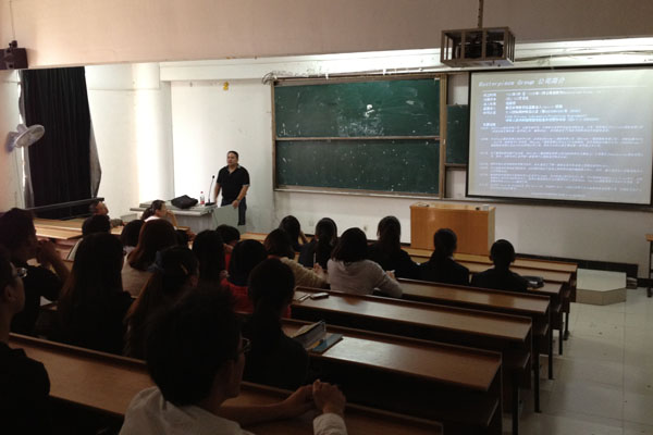 本网讯(通讯员  王冠亮)10月10日下午,外国语学院邀请到合肥九五太维商务咨询有限公司举办实习招聘宣讲会。商务日语专业应届毕业生参加宣讲会。