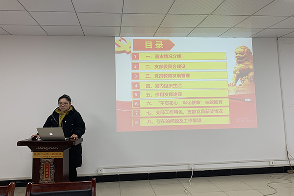会上,学生党支部书记赵群、牛山林、王菁、褚静、盛翠娟,教师党支部书记潘福婷、赵雅依次进行了现场述职。述职的内容围绕支部书记抓党建工作主责主业情况、党员教育发展管理、“不忘初心、牢记使命”主题教育工作、支部工作特色及成果,以及支部建设工作存在的突出问题及原因,针对问题的整改措施和下一步工作思路等展开。述职完毕后,党总支对现场述职的支部书记进行了点评。