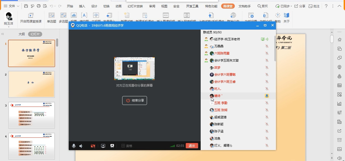 前期,经济学课程组通过组织线上集体备课,专门讨论如何发挥教学优势、充分运用现代信息技术、整合共享网络教学资源,并对教学大纲及时调整与补充。其中,微观经济学课程主要依托雨课堂平台,对预习材料、课件PPT和相关视频资源定期更新上线;课程组根据课程特点对使用的平台和资源进行调研和学习,充分了解教学要求和注意事项,确保线上教学平稳有序。