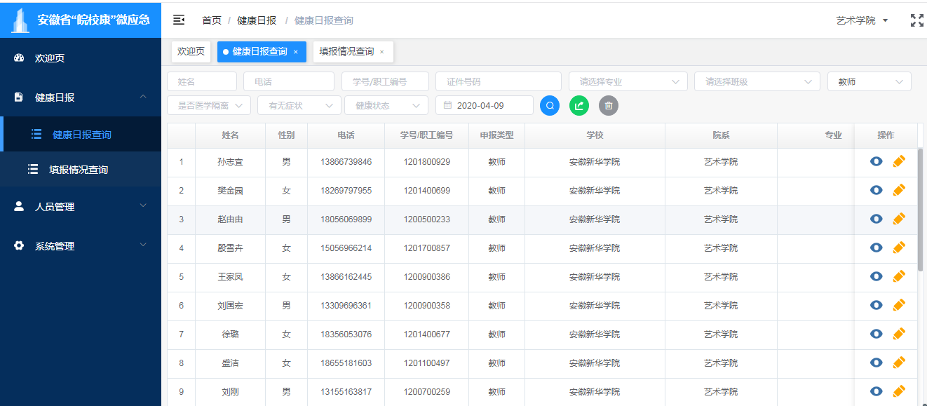 “疫情当前,安全第一”,艺术学院始终秉持“安全无小事、责任大于天”的工作原则,截至目前,在学校党委及保卫处、学生处等部门的指导和要求下,艺术学院全体上下一切安全,艺术学院将继续认真落实做好各项安全工作。