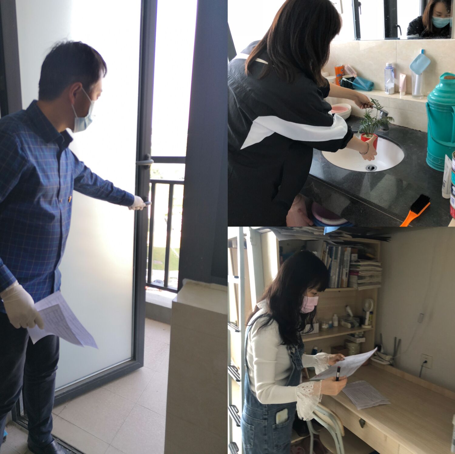教师第一支部在支部书记余新泳老师的带领下走向学生宿舍,征得学生本人同意后,通过视频电话方式寻找相关物品、邮寄相关文件资料。随着梅雨季节的临近,考虑到宿舍被褥长期不见阳光会发潮、发霉等情况,帮助低层背阴宿舍的同学晾晒被褥。