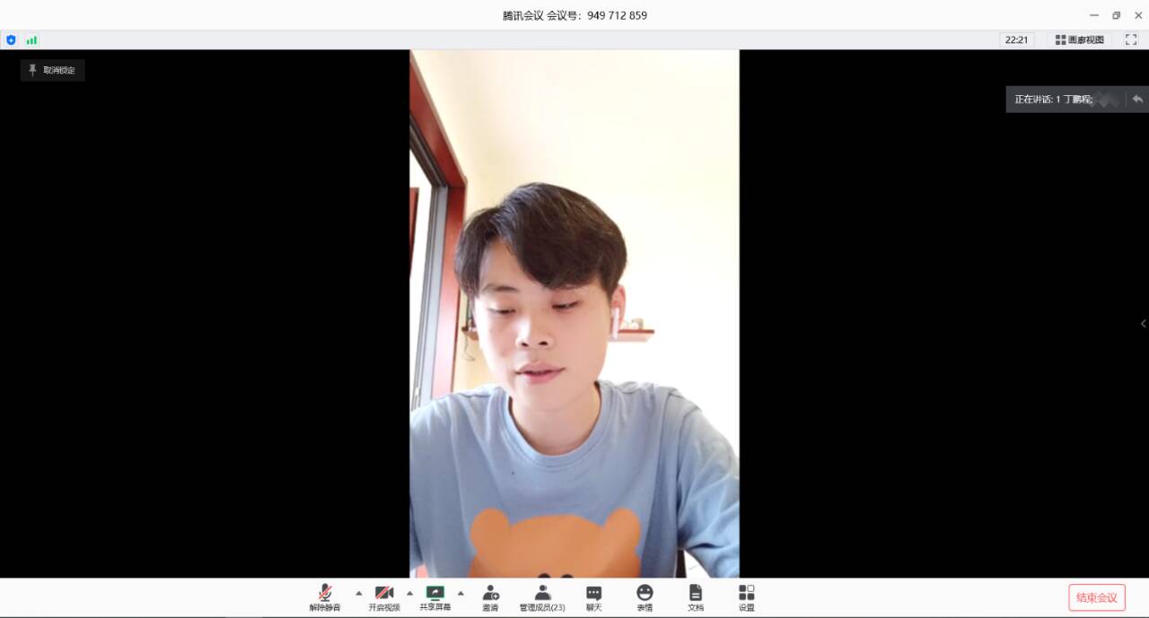 此次线上答辩共有17个答辩小组,为保证答辩有序进行,师生提前十五分钟进入线上平台,测试语音效果。答辩过程中,答辩学生需打开视频,其余成员除评委外均保持静音状态。