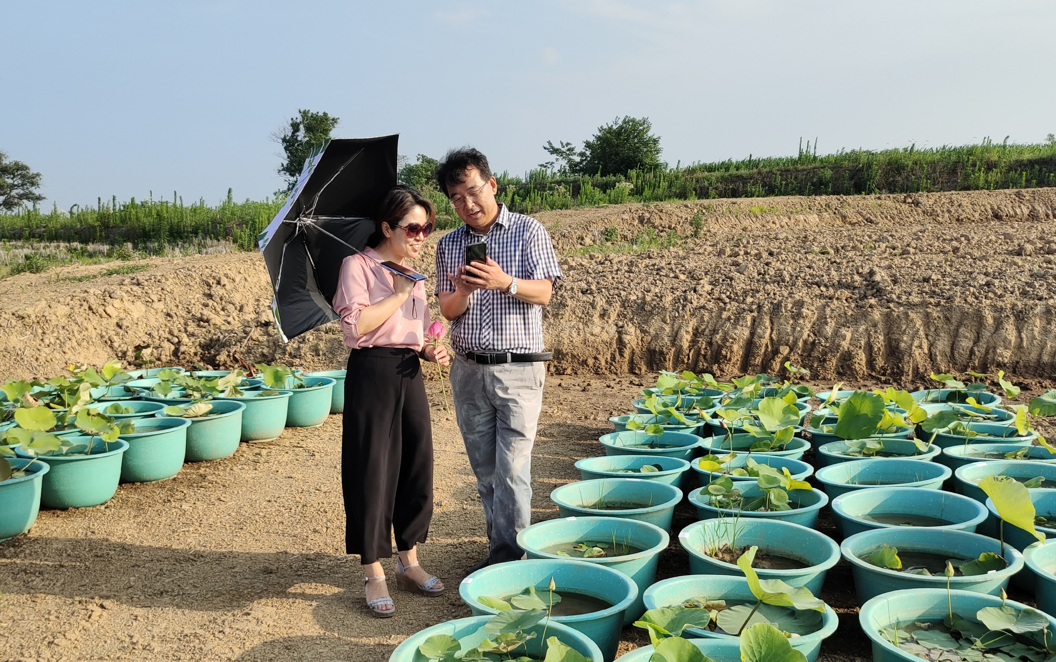 在第一书记王克贵及相关人员的带领下,文化与新闻传播学院老师和学生代表一同来到了山南镇乡村振兴“三庄联动”的示范点项目之一的长庄村太空莲项目示范点。其中,三庄联动中的“三庄”分别是小井庄村、长庄村与兴庄村,“联动”则是将小井庄的红色文化资源、长庄的太空莲基地与兴庄的杭白菊基地相联动,创建“一心一带、双环七区”的联动效应。山南镇“三庄联动”示范点项目实施后,不仅有助于加强“三庄”的人居环境、土地整理、乡村道路等基础类项目建设,也将深度挖掘农业生态价值,促进产业深度融合,提升红色旅游文化品质与质量,改善农民生产生活条件。