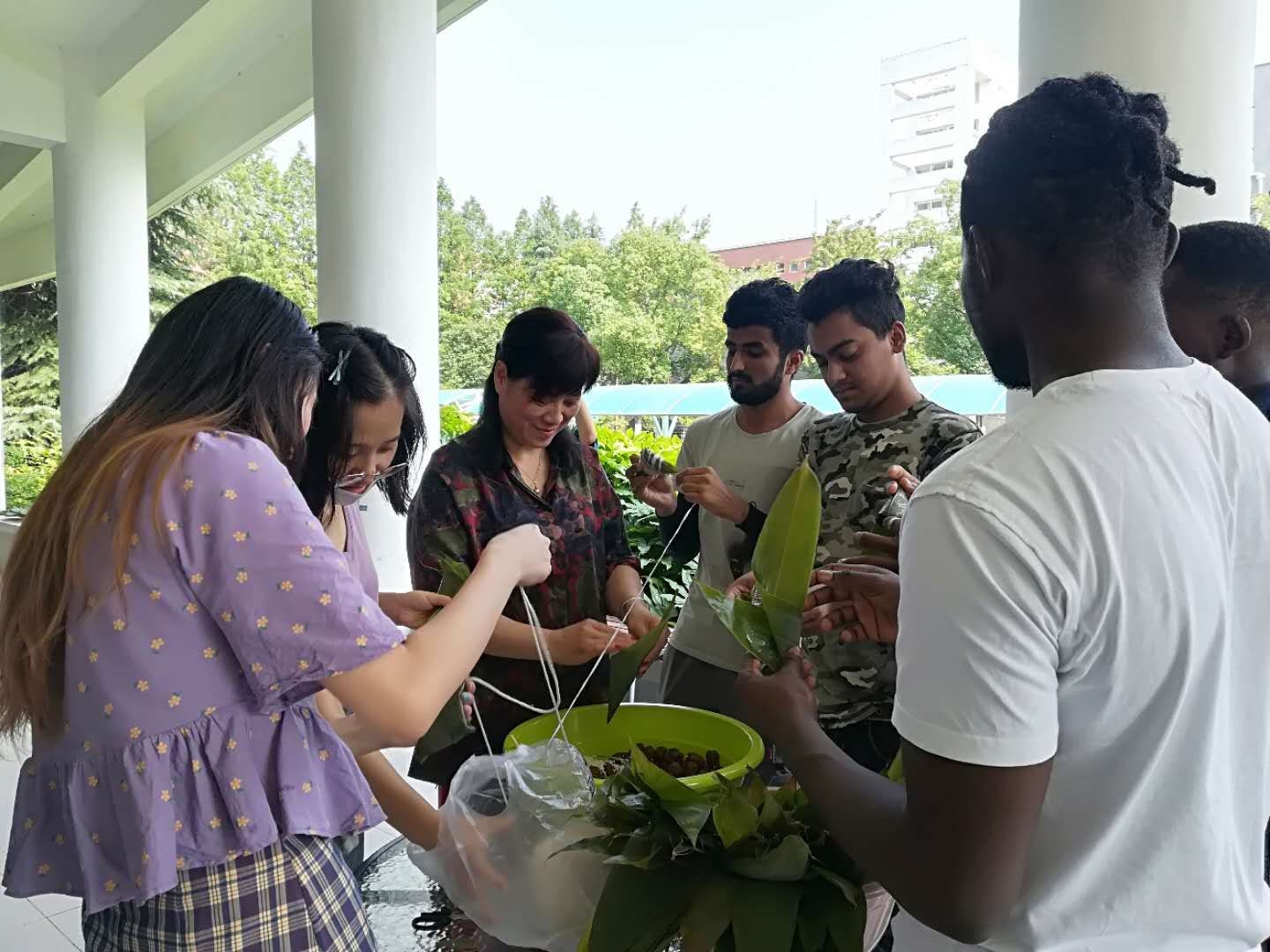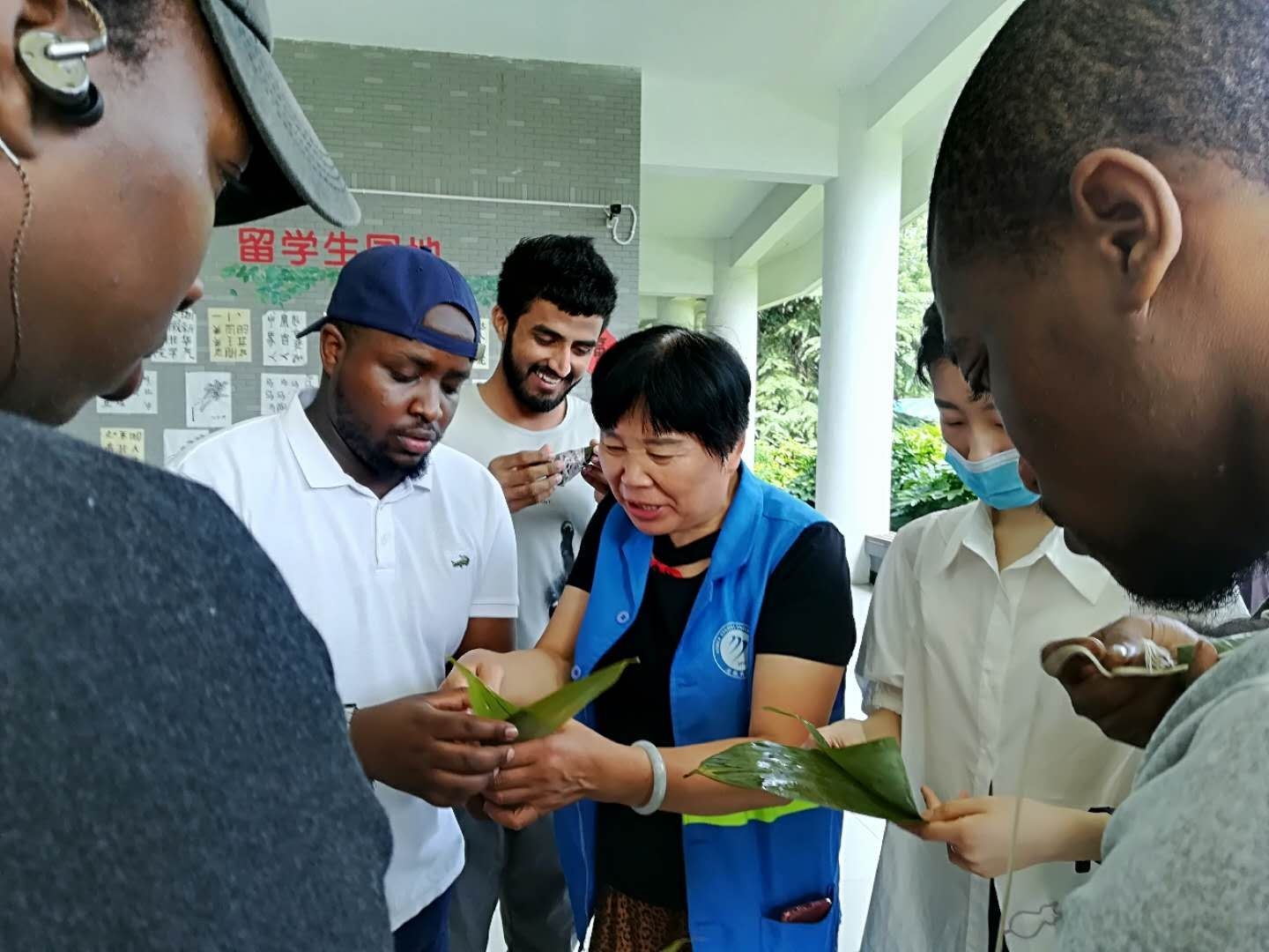 本网讯(通讯员:吴海峰)6月25日上午,为了让仍处于防疫封闭期的中外学生度过一个欢乐祥和的端午假期,国际交流合作处和国际教育学院在留学生园地举行“粒粒棕米香,情谊满华园”端午节包粽子活动,20余名来自巴基斯坦、孟加拉、津巴布韦等国的留学生和中国学生一起在老师的帮助下学习包粽子,欢度端午佳节,感受中国味道。国际教育学院执行院长徐鸣,处长助理程宜以及老师代表参加了此次活动。