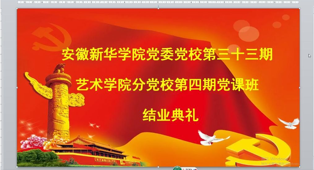 本网讯(通讯员:高扬)6月29日,beat365在线体育官网登录入口第三十三期艺术学院分党校第四期入党积极分子培训班结业典礼于腾讯会议线上举行。艺术学院党总支书记许存福、艺术学院党总支副书记彭智、艺术学院党总支纪检委员余新泳、艺术学院党总支宣传委员刘刚、艺术学院党总支组织员张大勇、艺术学院第一学生党支部书记张小菊及本期培训班全体成员出席了本次结业典礼,会议由艺术学院第二学生支部书记、本期党校班主任高扬主持。