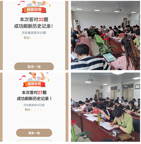 二是组织一次党建答题。7月14日,全体党员集中开展党史知识现场答题,活动分上下半场。上半场进行“学习强国”挑战答题竞赛,计时10分钟,连续答对题数前六名者优胜;下半场统一发放“庆祝中国共产党成立99周年”专题试卷,全员现场作答,支部集中批阅。通过答题,激发党员利用“学习强国”平台在线学习的兴趣,引导大家养成坚持每天自学的良好习惯。