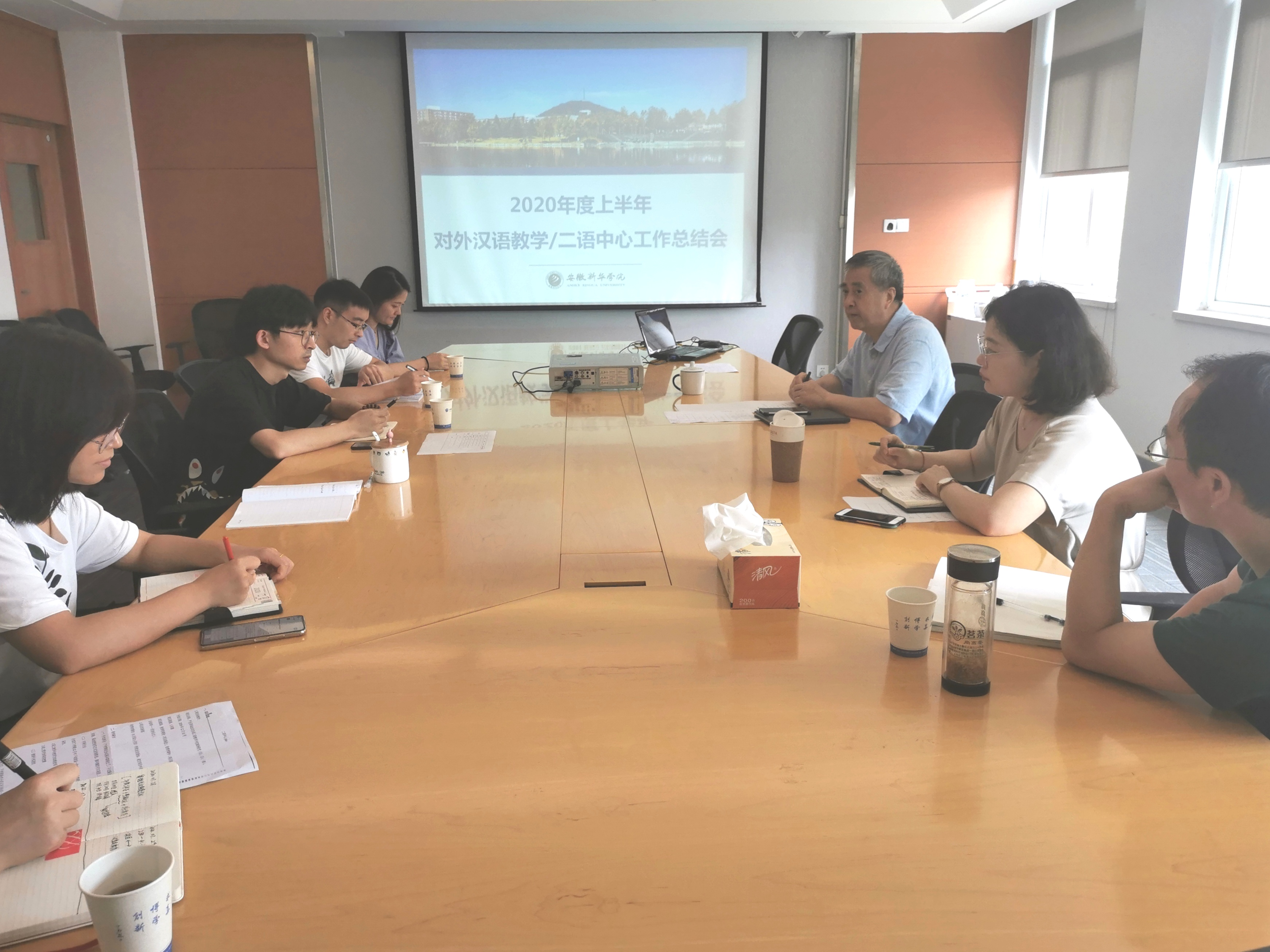 本网讯(通讯员:石丽丽)为了总结本学期beat365网登汉语教学及汉语作为第二语言教学研究中心工作,同时合理布置下半年的工作。2020年7月31日上午在国际教育学院会议室召开了工作会议,国际教育学院院长范东生、院长助理黄喆、对外汉语教研室以及二语中心全体成员参会。