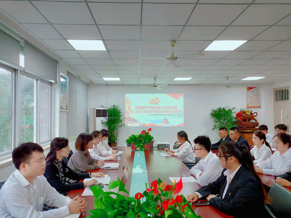 本网讯(通讯员:谷学颖)为鼓励和支持优秀大学生在学思践悟中体现青年的担当,发挥模范带头作用,9月24日,财会与金融学院党总支组织了2020年度宣讲员的竞选活动,拟在全院学生党员和入党积极分子中选拔一批政治立场坚定、思想觉悟高,有社会责任感的优秀青年大学生加入到我院大学生党员宣讲团的队伍中来。财会与金融学院团总支副书记芮萍、组织委员谷学颖及全体第一届宣讲团成员出席了本次活动。