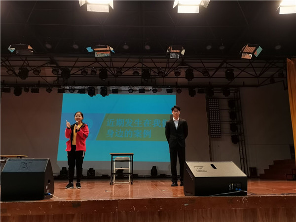 本次讲座和以往有所不同,首先展示了由20级学生根据真实案例编排的3个情景剧,肖华君和现场学生进行了互动“看了情景剧你们有什么感想”“如何识破骗局”。让在场的同学零距离感受电信诈骗的隐蔽性、欺诈性和危害性。紧接着肖华君就目前社会上常见的电信诈骗手段,如通过QQ、微信等方式,冒充机关工作人员或熟人进行诈骗、刷单诈骗、贷款诈骗、退款诈骗和虚假购物诈骗等等多种诈骗手段,并结合案例,为学生们进行了详细的解说,同时也告诫学生们,一些诈骗分子,尤其是会将目标转向思想单纯、社会经验不足的大学生,希望大家高度警惕,无论文化知识水平高低,都可能被如今针对性很高的新型电信诈骗所迷惑。