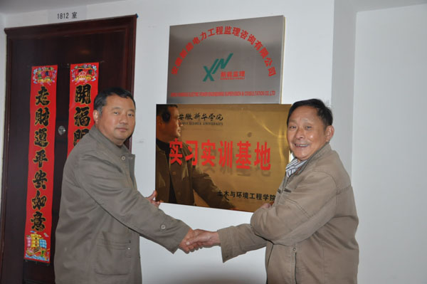 本网讯(通讯员 俞士毛,摄影 刘波)为提高人才培养质量,拓展实习范围,更好地实现应用型人才培养。11月22日上午,土木与环境工程学院院长方达宪一行四人来到安徽新能源电力工程监理咨询有限公司进行校企合作协议签订及实习基地揭牌。