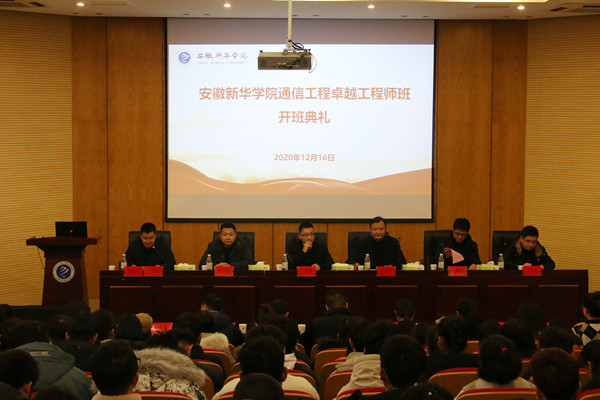 本网讯(通信员:陈璟)2020年12月16日下午,beat365网登举行通信工程卓越工程师开班典礼。校长助理、电子工程学院执行院长王琦进,中兴教育管理有限公司副总经理李保桥,华为安徽政企业务部副总经理李华强,深圳市讯方技术股份有限公司 安徽区域总监马劲松,联通(安徽)产业互联网研究院工业互联网行业总监武涛,电子工程学院副院长汪青、罗振林,中兴教育管理有限公司区域总经理姚磊,中兴教育管理有限公司安徽区域校区运营总监王干,电子工程学院通信系全体教师、2020级通信工程专业学生参加了此次开班典礼。