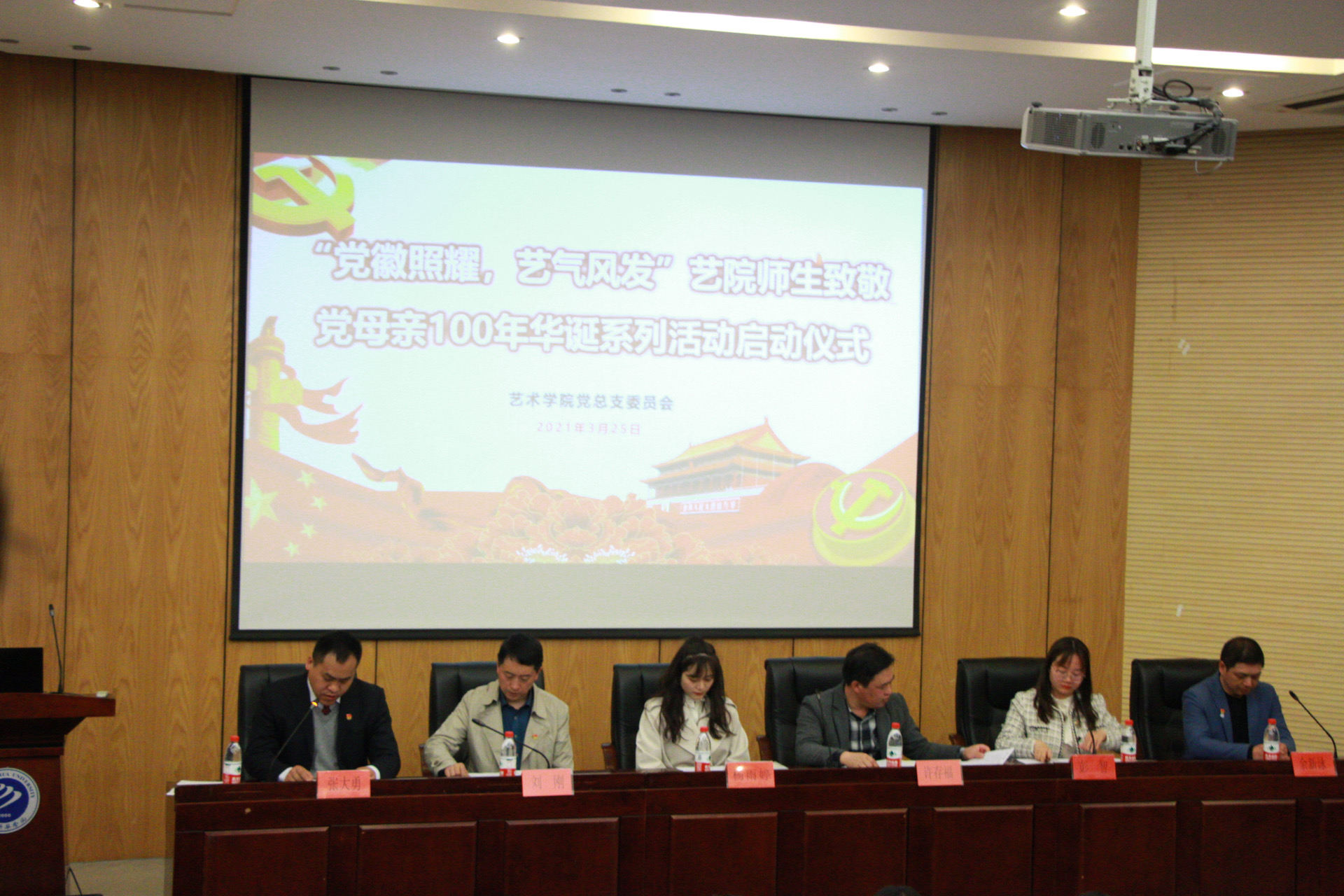 本网讯(通讯员:张大勇)3月25日中午,“党徽照耀、艺气风发”艺术学院党总支2021年特色党建系列活动在学术报告厅正式启动,艺术学院党总支书记执行院长许存福、校党委主任助理杨雨婷、艺术学院党总支副书记院长助理彭智、艺术学院党总支宣传委员院长助理刘刚、艺术学院党总支纪检委员实验实训主管余新泳、艺术学院党总支组织员张大勇出席了启动仪式,艺术学院全体师生党员参会。会议由张大勇主持。