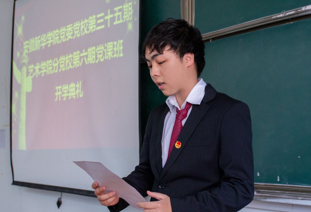 他对能参加此次党课学习表示感谢,并代表全体学员承诺努力学习党课知识,严格要求自己,争取早日入党。紧接着,张大勇宣读党校组织纪律,强调按时参加党课等纪律问题,期待有更多优秀的同学早日站在党旗下。