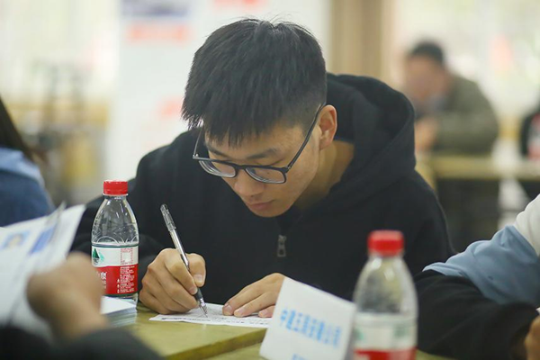 双选会上各公司负责人通过悬挂海报,发宣传单等形式向学生介绍公司概况、职业发展方向、人员需求以及薪资等情况,现场有不少毕业生与企业达成了就业意向。此外,部分非应届毕业生也参与到招聘会中,提前了解市场需求和就业前景,为就业做好准备。