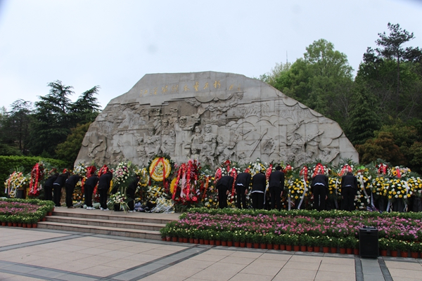 大蜀山烈士陵园内墓碑高耸,气氛庄严肃穆,在药学院团总支书记、学管秘书兼行政秘书赵影的主持下,全体学员面向烈士墓碑默哀,向为新中国的成立献出自己宝贵生命的英烈们寄托深深的哀思。随后,各位学员向革命先烈献上素雅的菊花,深切悼念为国献出生命的英雄先烈,表达了对烈士们的敬仰与钦佩。