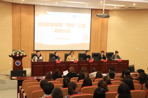 本网讯(通讯员:杨静 )4月7日是世界卫生日,为贯彻习近平总书记在全国教育大会上的讲话精神和《中共中央国务院关于全面加强新时代大中小学劳动教育的意见》,引导学生崇尚劳动、尊重劳动、热爱劳动,外国语学院在学术报告厅举行劳动教育实践“四化”工程启动仪式。会议邀请了校辅导员发展研究中心/劳动教育研究中心主任朱平、学生处/团委/校企合作办公室处长助理计羚,参会的还有外国语学院院长助理陈丽、全体学工人员和学生代表。