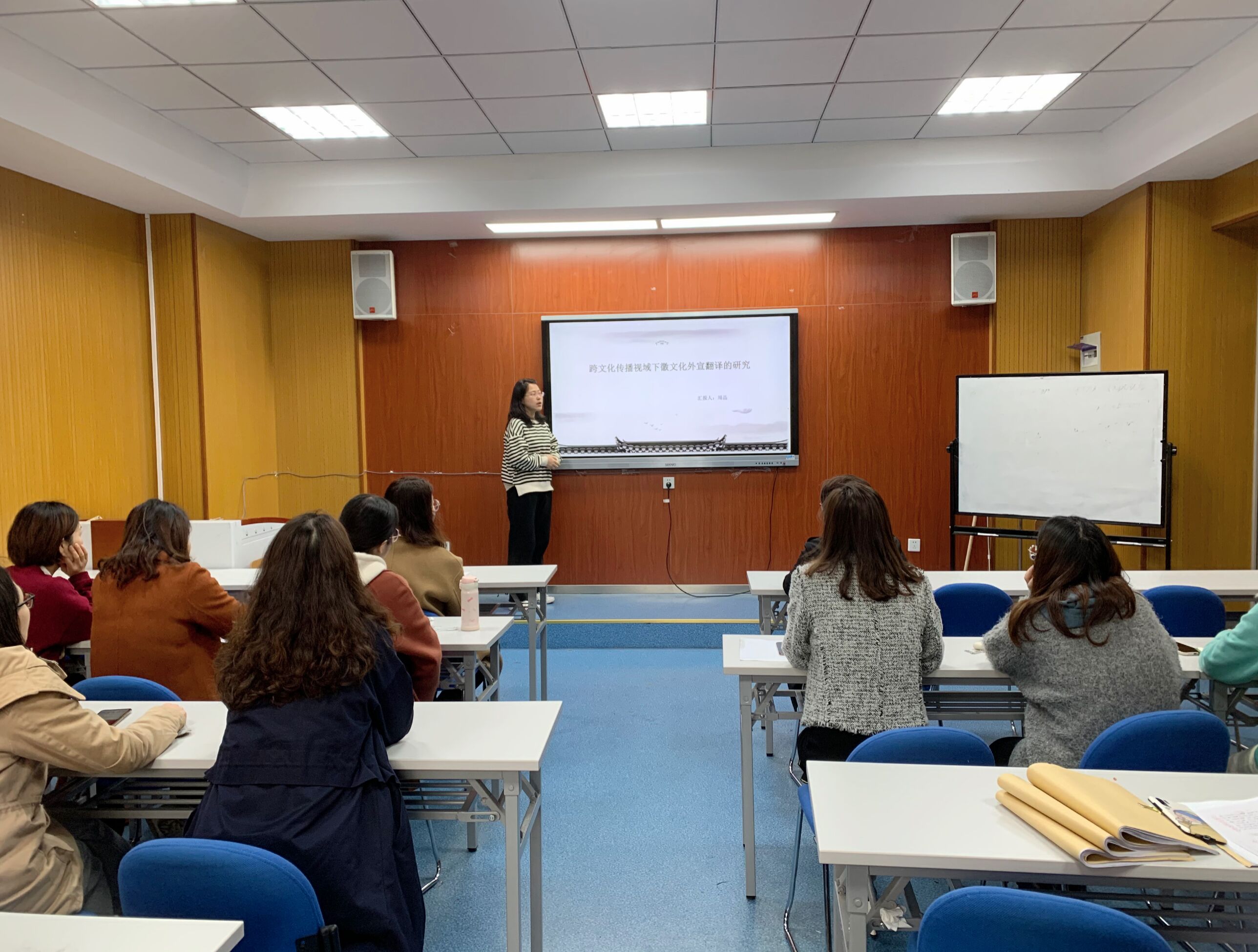 基于省级人文社科重点项目“跨文化视角下徽文化外宣翻译”,周晶首先对该项目的研究目的、意义及研究内容进行了主题分享,重点阐述了徽文化丰富的内涵与文化传播过程的关系,旨在为徽文化的对外传播及推动地区经济发展提出适应性对策。随后,各位教师分别就该主题的理论概念、研究视角、研究内涵和意义进行了深入讨论和交流。