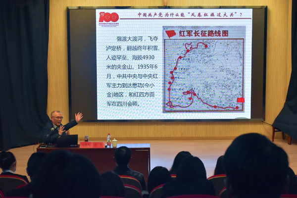 文化与传媒学院开展《中国共产党为什么能“风卷红旗过大关” ——从党破危脱困勇闯险关中汲取智慧力量》讲座
