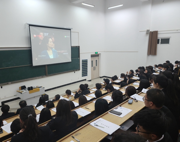 黄德垚以“当代大学生的家国情怀”为主题,先介绍了“什么是家国情怀”---“家国情怀”是中国优秀传统文化的基本内涵之一。所谓的“家国情怀" ,是主体对共同体的一种认同,并促使其发展的思想和理念。之后向同学们介绍了知名学者对爱国主义家国情怀的看法,并鼓励同学们要牢记使命,听党话、跟党走,用爱国之情激扬青春之志,将个人理想融入中华民族伟大复兴的中国梦,用勤奋学习焕发青春光彩,在专业学习中增长知识、锤炼品格,在社会实践中增长才干、练就本领。加强政治理论学习,认真学习党史,学习马克思主义理论经典著作,树立正确的政治观念,坚定共产主义信仰,做一名马克思主义坚定的拥护者、追随者。