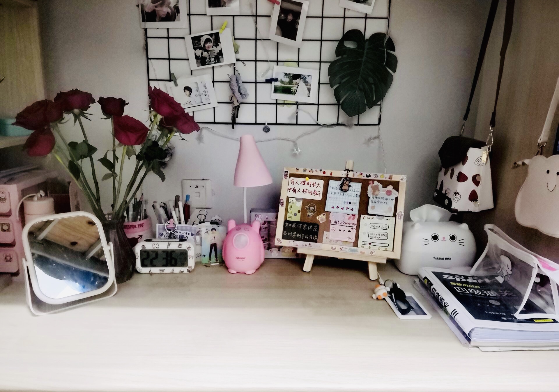 为便于此项活动的顺利开展,外国语学院从以点带面、整体推进的原则出发,首先在实验班20英本1班开展此项劳动教育活动。活动过程中,学生积极发挥奇思妙想,有以绿植、花束为主体布置出的绿化型书桌;以海报、照片等饰品为主体布置出的美化型书桌;以课外书籍、计划表等为主体布置出的文化型书桌,将劳动教育中的“四化”与寝室书桌完美融合在一起。