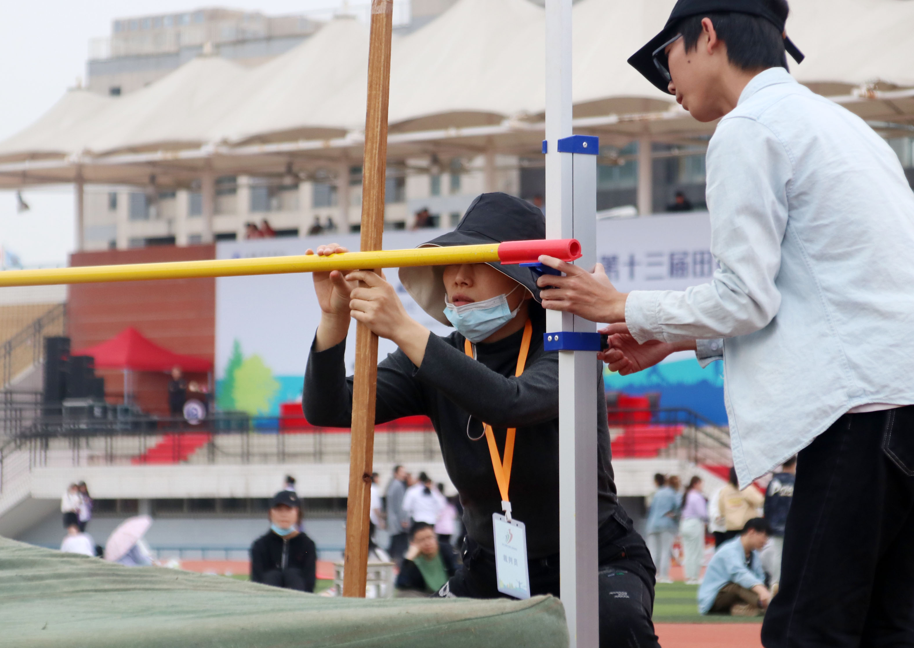 跳高这场比赛对于他来说不仅仅是技术的较量,更是体力的较量,在参加跳高比赛之前,他刚从三级跳的赛场赶来,已经进行了二轮三级跳,跳了六跳。此时的体力和心力已在三级跳中磨损了不少,稍大的体力消耗和紧绷的心理状态让他有点支撑不住了。最后一跳了,一个漂亮的背跃。