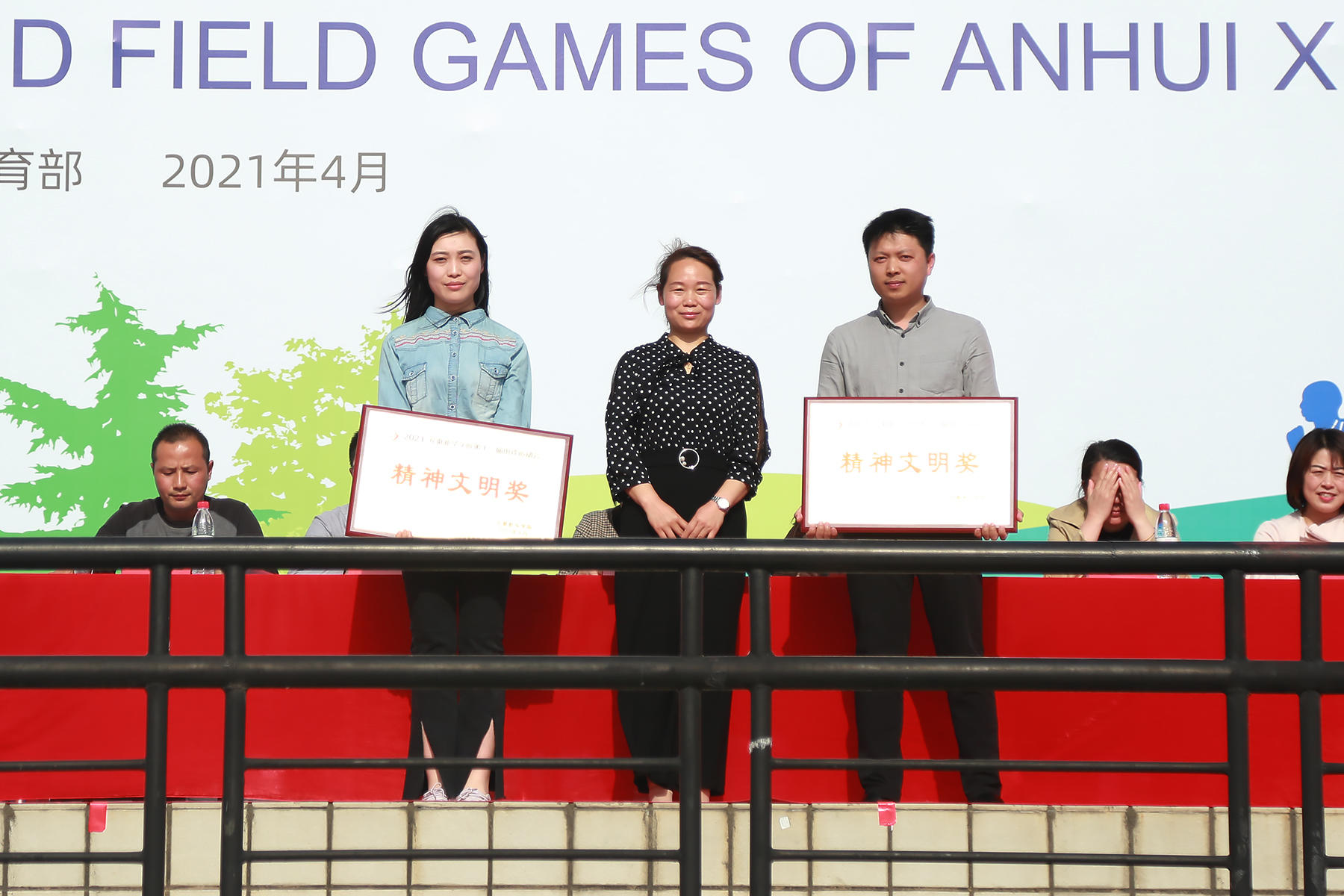 校长助理王琦进为获得团体一等奖的单位颁奖。财会与金融学院夺得本届运动会团体总分一等奖。