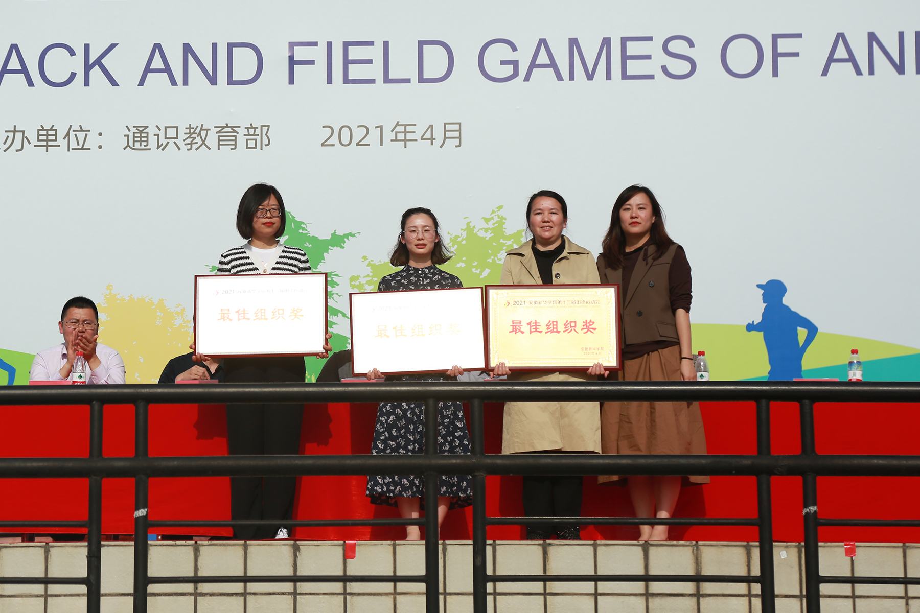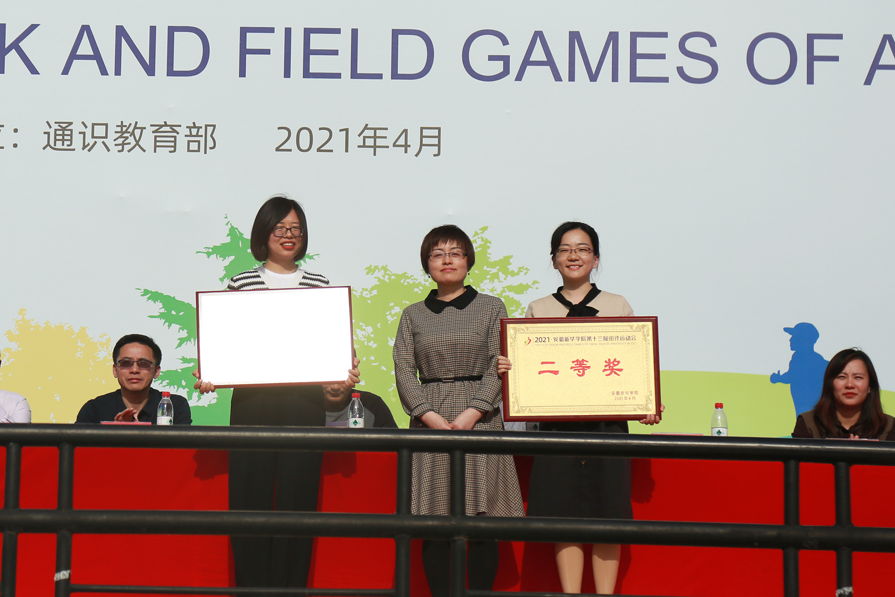 通识教育部副主任何亚梅为获得“精神文明奖”“最佳支持奖”“最佳进步奖”的单位颁奖。“精神文明奖”由国际教育学院、科技学院/继续教育学院获得;“最佳支持奖”由文化与传媒学院、艺术学院获得;“最佳进步奖”由商学院、科技学院/继续教育学院获得。