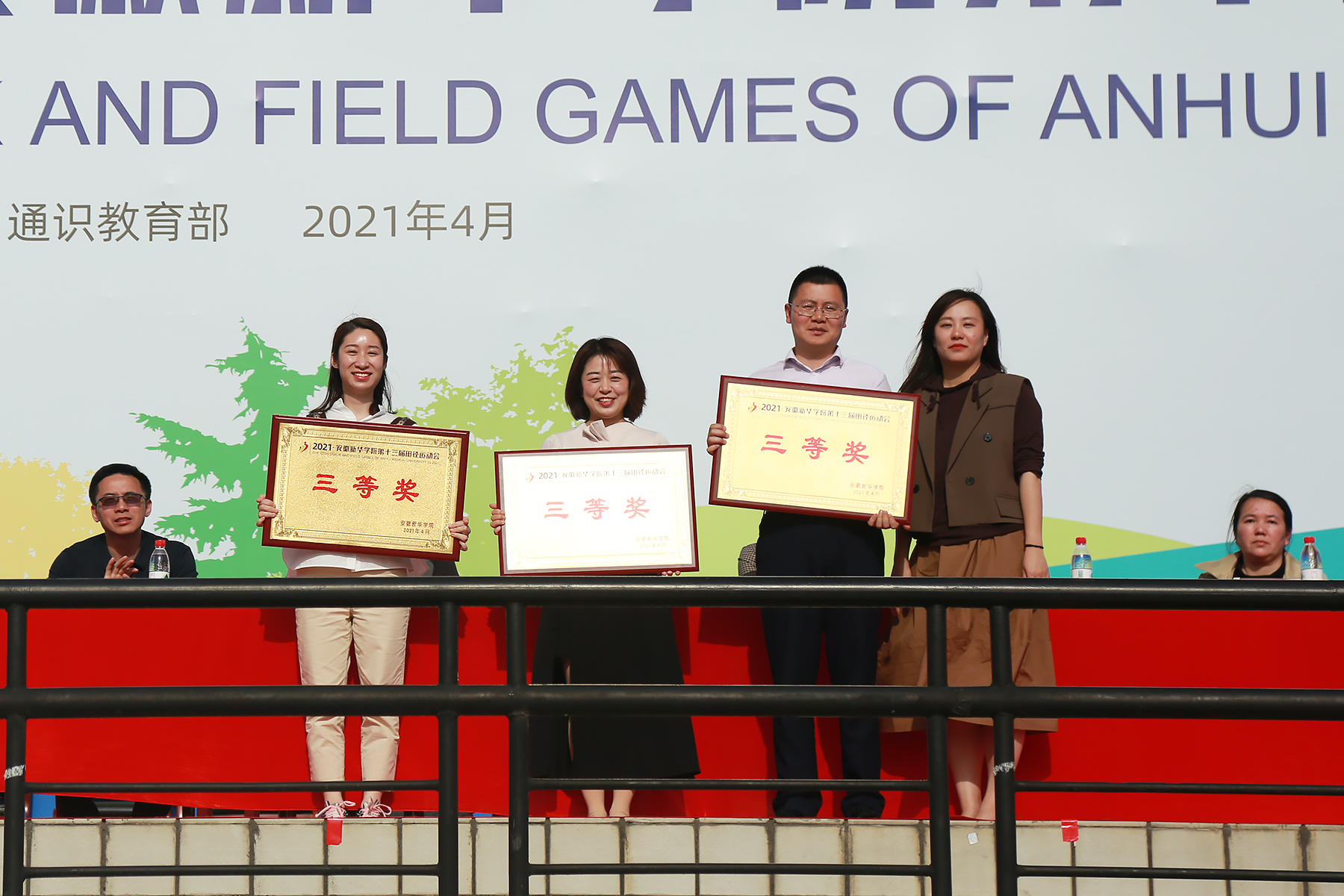 学生处副处长郑妮为获得“最佳组织奖”和团体三等奖的单位颁奖。“最佳组织奖”由大数据与人工智能学院、外国语学院、药学院获得;电子工程学院/智能制造学院、文化与传媒学院、商学院获得团体总分三等奖。