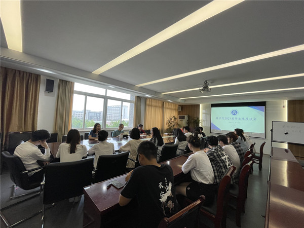 本网讯(通讯员:程梦君)为了解我院毕业生毕业规划、为毕业生提供毕业指导和建议,6月16日,商学院在院会议室召开商学院2021届毕业生座谈会。我院院长翟荣兵、副院长刘冬艳、院长助理汪明天及20名毕业生参加本次毕业生座谈会,会议由汪明天主持。