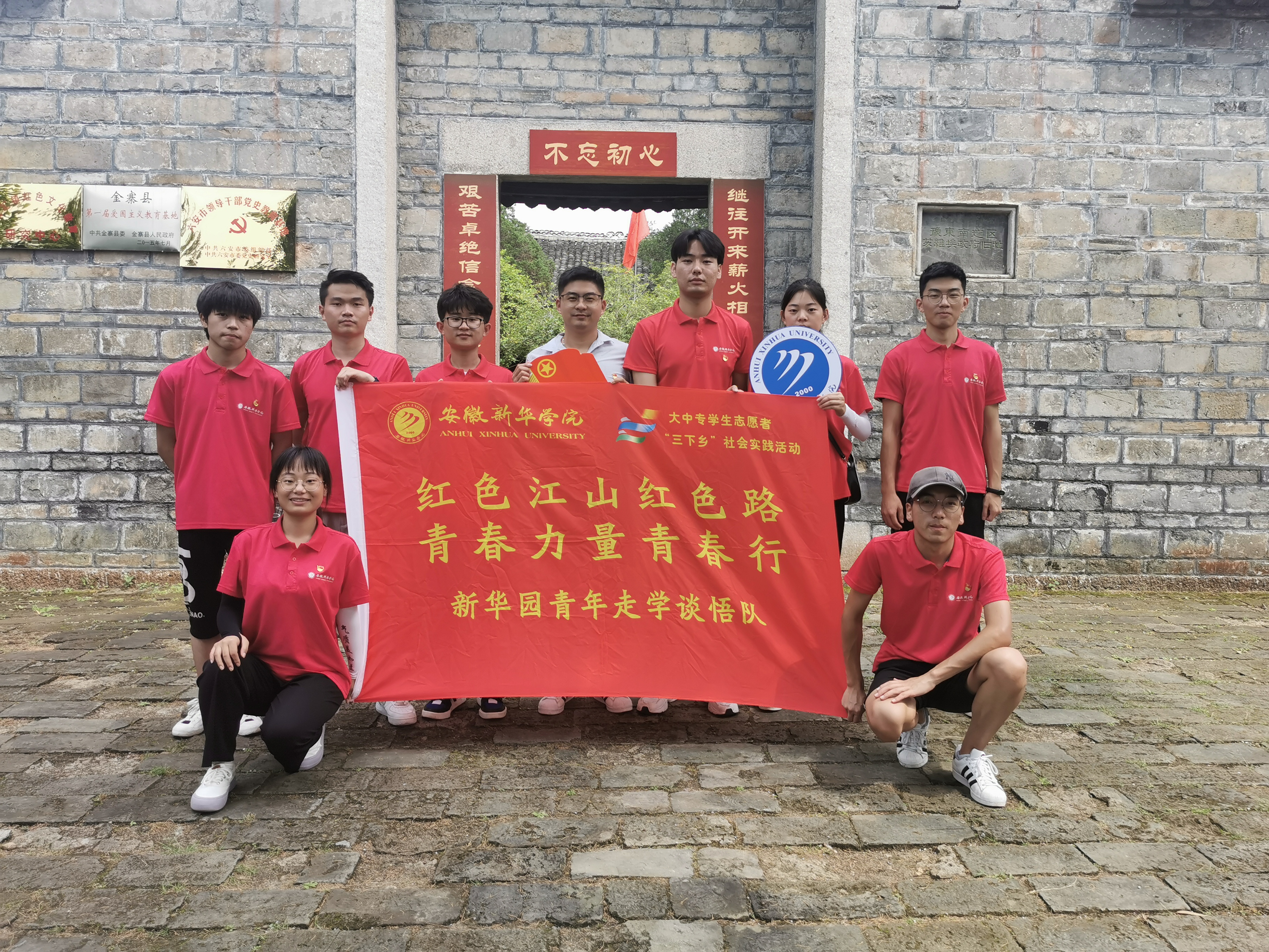 立于革命旧址前,团队一众心潮澎湃。在党的领导下,一场场起义的爆发,一座座乡镇的攻占,金寨人民用他们的鲜血和生命谱写革命胜利。正值青春年华,成长在新时代的光辉照耀下,青年学子们理应怀着满腔热血,投身革命事业,以实际行动继承革命先烈的信念,重温红军精神,再走红色道路,学习红色文化,建设红色江山。