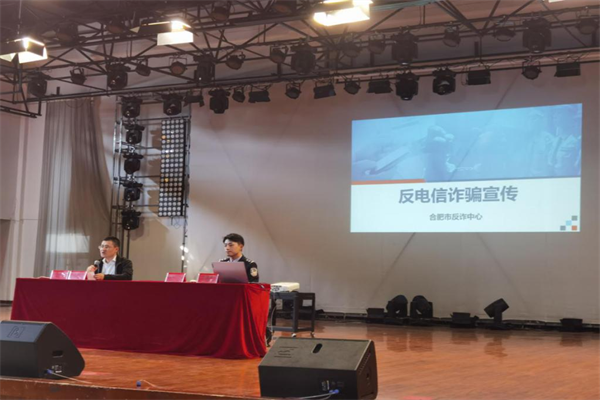 本网讯(通讯员:汪凌汇)为了进一步夯实“防电诈”宣传教育系列活动的良好效果,提升全院师生远离网络犯罪、防范电信诈骗的知识技能,10月27日下午,电子工程学院/智能制造学院邀请合肥市公安局刑警支队五大队副队长杨础,在学校大礼堂开展“防范电信诈骗”专题讲座。参与本次讲座的有电子工程学院/智能制造学院副院长罗振林、学管秘书汪凌汇、辅导员代表及各年级学生代表。
