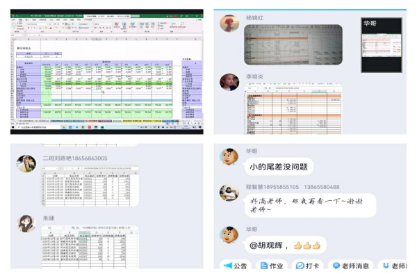 为严格遵守疫情防控要求,虽然是线上学习,但学生每天准时打卡上课,积极完成老师布置的个体、小组实训任务,隔屏互动,老师耐心逐一解答学生提问,并仔细查看讲解学生完成的任务截图。学生们反馈课程设置内容丰富、安排紧凑合理,并表示老师不仅教授了财会方面的知识更训练了同学们对Excel的运用,将函数公式与财会公式灵活结合。