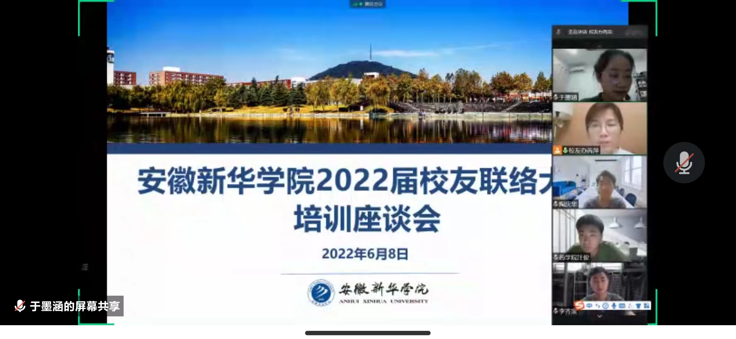 本网讯(通讯员:于墨涵)6月8日,2022届校友联络大使培训座谈会通过腾讯会议举行,校友工作办公室(以下简称“校友办”)工作人员及选聘的19名2022届校友联络大使参加了本次会议,会议由校友办于墨涵主持。