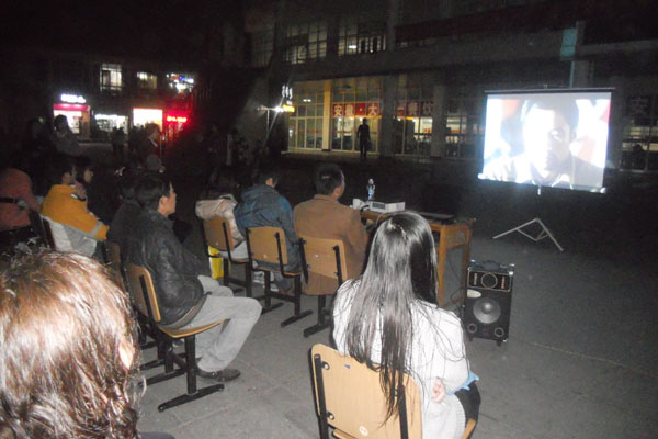药学院各班级举行了向雷锋同志学习的各项有意义的活动,学生会成员在翰林广场播放“向雷锋学习”的电影,极具意义。