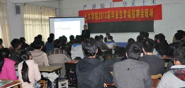 土木与环境工程学院就业工作在保持较高的就业率和较好的就业质量同时,还有针对性地邀请行业内具有创新性及代表性的企业来学院举办宣讲会,希望以此能让毕业生对行业内新的发展方向以及新的领域有一定的认识。本次招聘会共进行了约1个小时,共有60余名同学投递了简历。为土木与环境工程学院就业重心顺利转移起到了良好的推动作用。