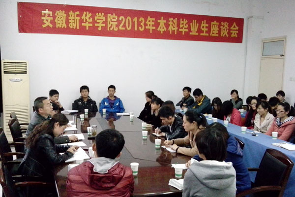 本网讯(通讯员 祝俭)4月23日下午,招生就业办公室组织召开2013年本科毕业生座谈会。招生就业办公室相关工作人员和各二级学院40余名2013届、2014届毕业生代表参加了座谈会,会议由招生就业办公室副主任主持。