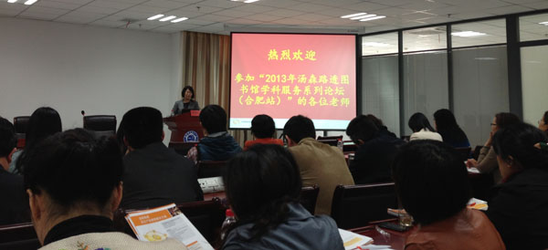 本网讯(通讯员 王青叶)4月25日,2013年汤森路透图书馆学科服务系列论坛(合肥站)在中国科技大学东区图书馆四楼报告厅举办。全省各高校图书馆的信息服务人员均应邀参加,我馆参考咨询部三名工作人员全部参与该论坛并接受了相关培训。