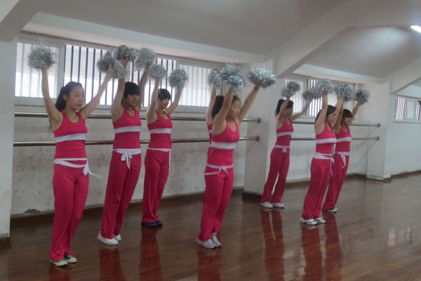 为在我省大中专学校广泛推广“校园啦啦操”,进一步推进学校 “阳光体育运动”的开展,安徽省学校体育卫生协会于2013年4月19日至21日在合肥市安徽农业大学体育馆举办啦啦操骨干教师培训班,beat365网登教师高新玲和赵春艳参加了培训,学习结束后她们就立即开始在beat365网登进行推广教学。赵春艳老师利用课余时间对学生进行了为期两周的培训。