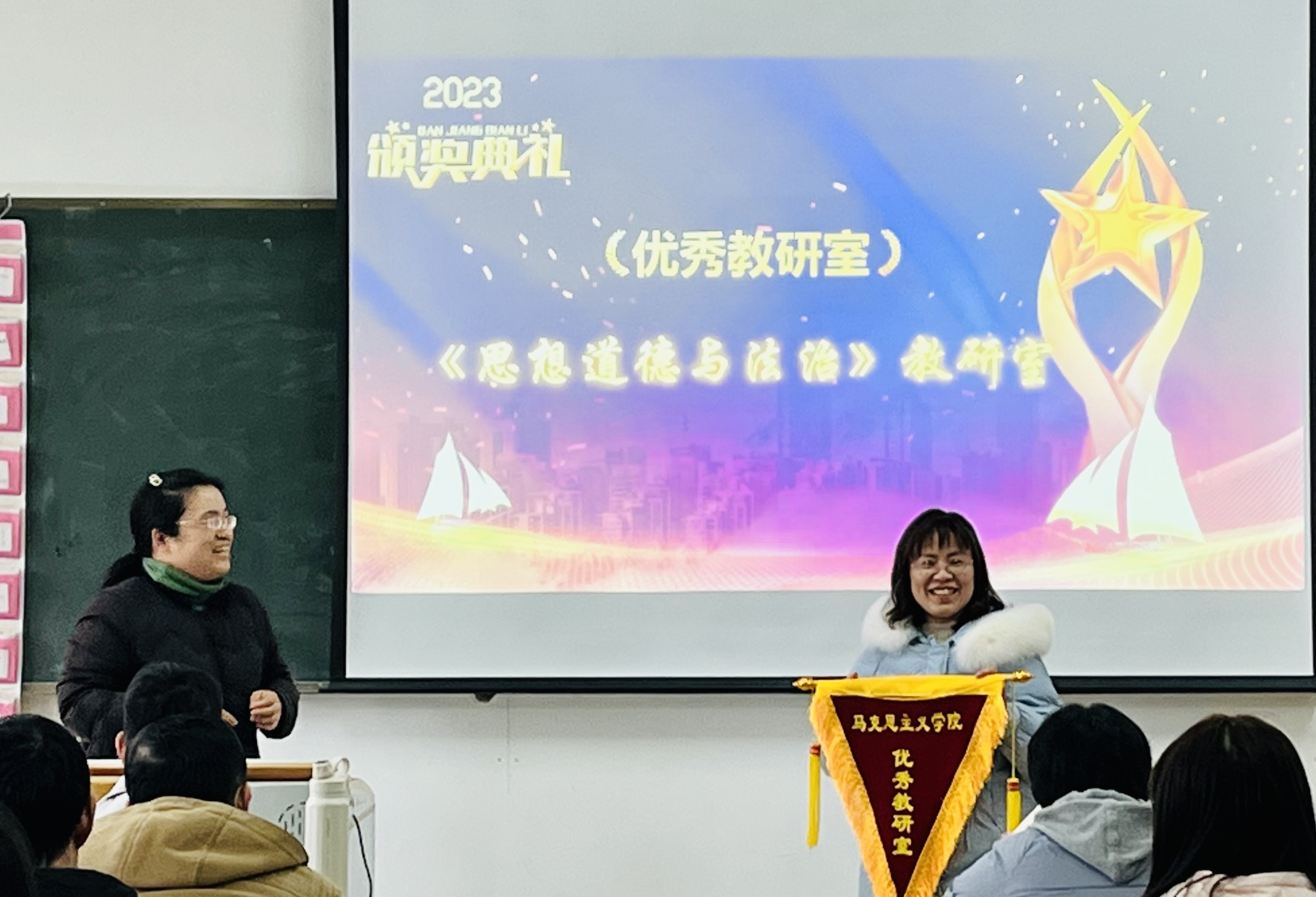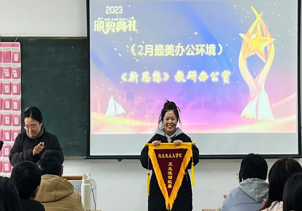 会议首先对获得本院2022年度“优秀教研室”和2023年“2月最美办公环境”荣誉称号的教研室进行颁奖。董丽娟对各教研室过去一年的工作成果做详细总结并给予充分肯定,鼓励全体教职工继续从教学工作、学生工作、教研科研、日常办公等方面入手,着力提高思政教师自身的职业素养和道德规范,鼓励党员同志积极参与学校举行的评优评先活动,充分发挥思政教师中党员队伍的带头模范作用。