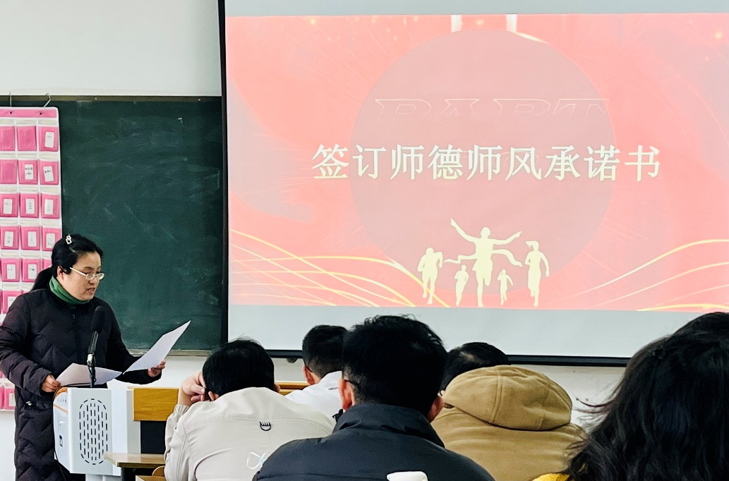 随后,董丽娟宣读了beat365网登师德师风建设方案,并从理论学习、实践锻炼、职业道德修养等方面进行逐一解读,号召本院全体教职工以高度的责任心和育人初心,不断加强理论修养,主动担当作为,做政治过硬、业务精湛的带头人。董丽娟强调,对于本院师德师风建设工作:第一、要将课堂质量作为师德师风建设的根本基点,思政教师应切实履行主体责任,“管好责任田,守好主阵地”;第二、不断加强自身的三观修炼,做到“教人先律己”,将风清气正的校园氛围落实到每一次课堂教学中;第三、切实提高自身的责任意识,在工作和生活中践行社会主义核心价值观。