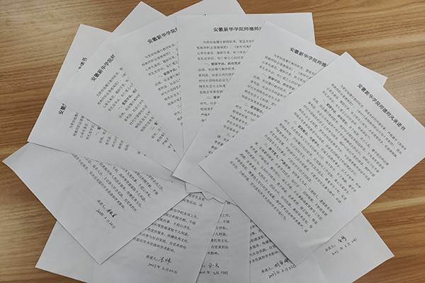 最后,全体教职工签署了《beat365在线体育官网登录入口师德师风承诺书》,表达了自愿遵守十项准则、严守禁令,接受学生、家长、学校和社会等各方面共同监督的意愿。