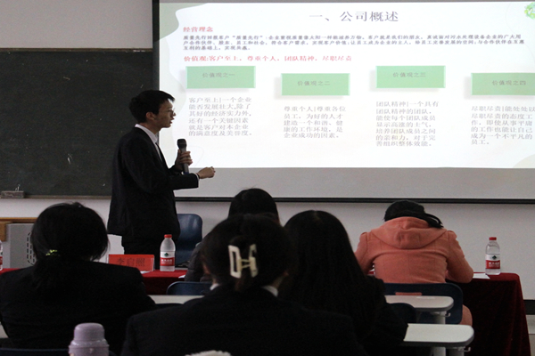 比赛开始,每支比赛队伍进行PPT演讲汇报,对项目背景、产品设计理念、核心优势、市场前景、可行性分析、创新点、优劣势进行演讲。之后,每五支队伍一组,评委进行点评。
