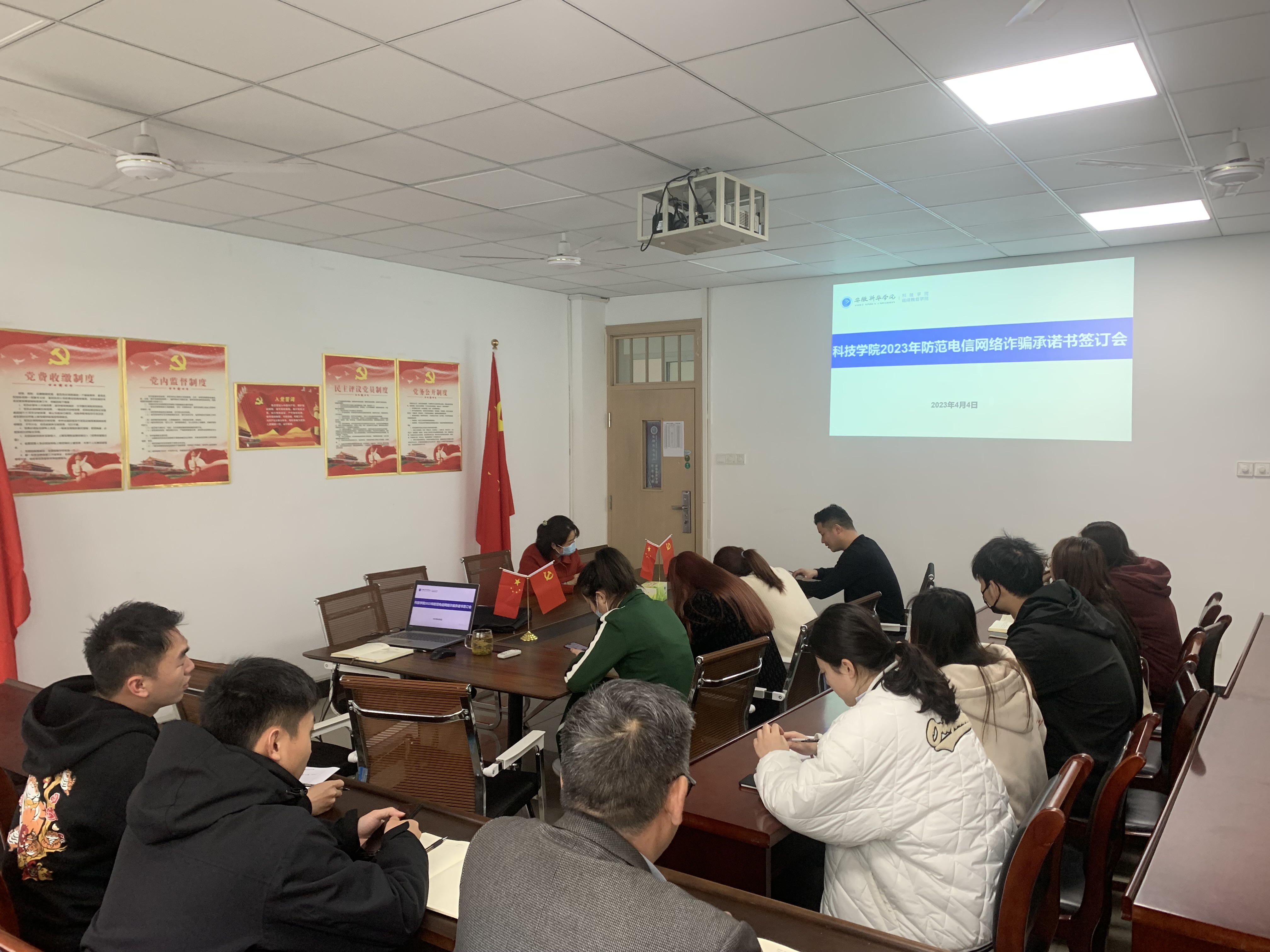 本网讯(通讯员:叶娟)为切实提高学生的防骗意识和识骗能力,保障学生个人财产安全,科技学院分层次、多渠道深入开展防范电信网络诈骗宣传工作。4月4日,科技学院开展2023年防范电信网络诈骗主题教育班会,组织全院学生签订《2023年防范电信网络诈骗承诺书》,筑牢防诈“安全线”。