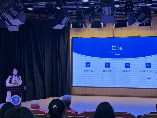 学科竞赛秘书刘静进行了工作汇报。刘静对文化与传媒学院2022年度学科竞赛获奖情况进行回顾,并对取得的成绩进行总结,她表示:各项赛事在2022年呈现增加趋势,成绩显著,这离不开文化与传媒学院全体师生的共同努力。随后,刘静根据工作不足之处对推动我院学科竞赛工作提出了三点建议:一、增强文件学习的主动性,提高工作效率。二、明确职责责任,防止推诿。三、创新工作方式,打破定势思维。