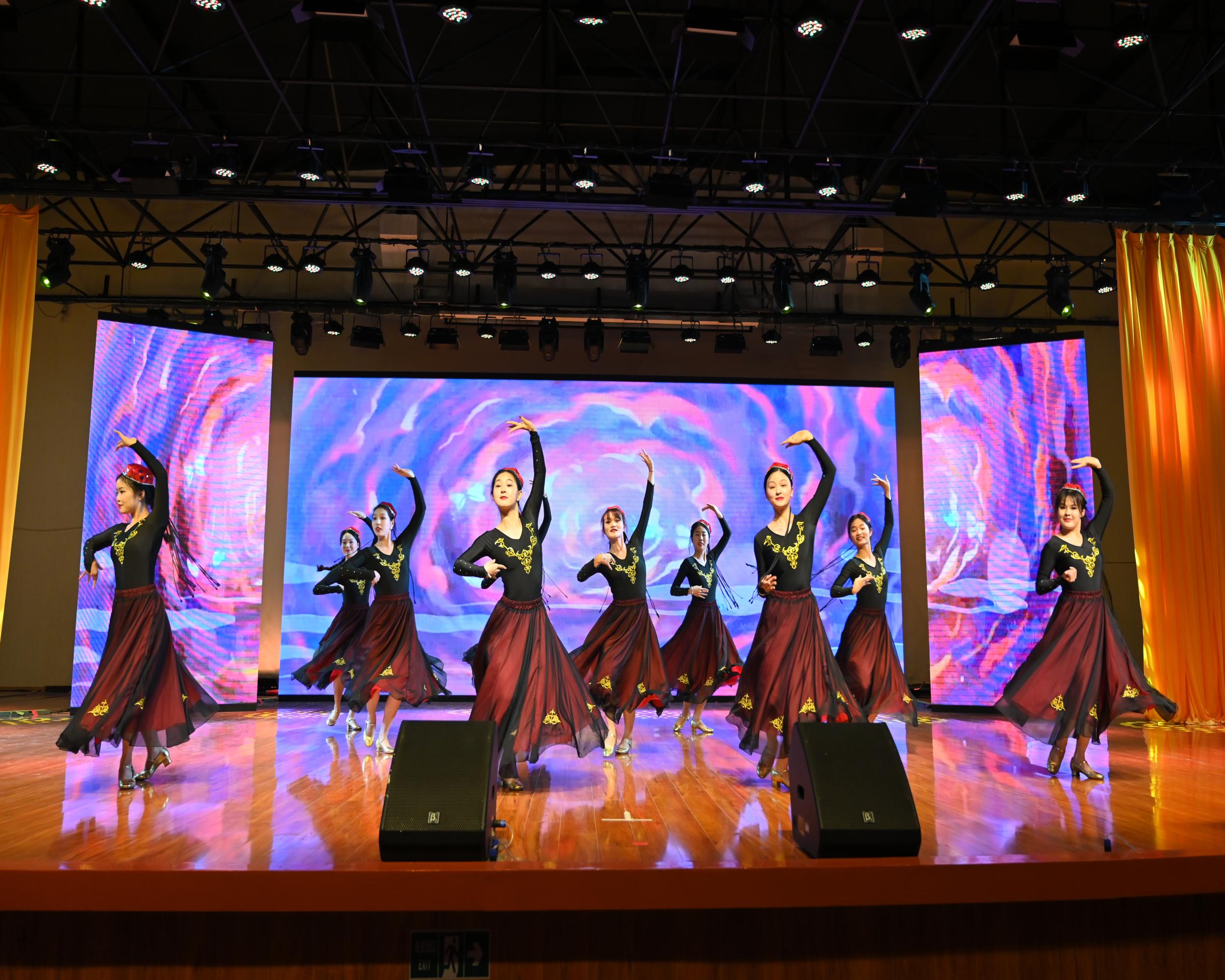 晚会由课堂展示和艺术表演舞展示两个部分组成,展示了师生们多年学习与实践教学的成果,其中《芭蕾教学展示》、《拉丁教学展示》《少儿教学展示》和《民族民间舞教学展示》凸显了我院以市场为导向,以夯实专业基础为抓手,不断提高舞蹈专业教育教学质量,学生们基本功扎实,表现力强。