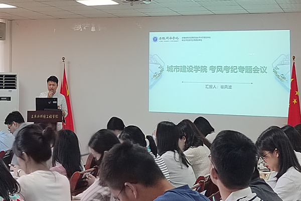 城市建设学院副院长崔风波详细解读《城市建设学院关于进一步加强考风考纪的通知》,他表示考试诚信是学生教育环节中的重要一环,同时影响考试公平和整体学风,院内各老师应高度重视起来,严格要求考风考纪;全体教师也要严格按照考风考纪要求,履职尽责,恪尽职守,为营造良好的考风筑起防火墙。会后,全体教师在《城市建设学院考试知情承诺书》上签名。
