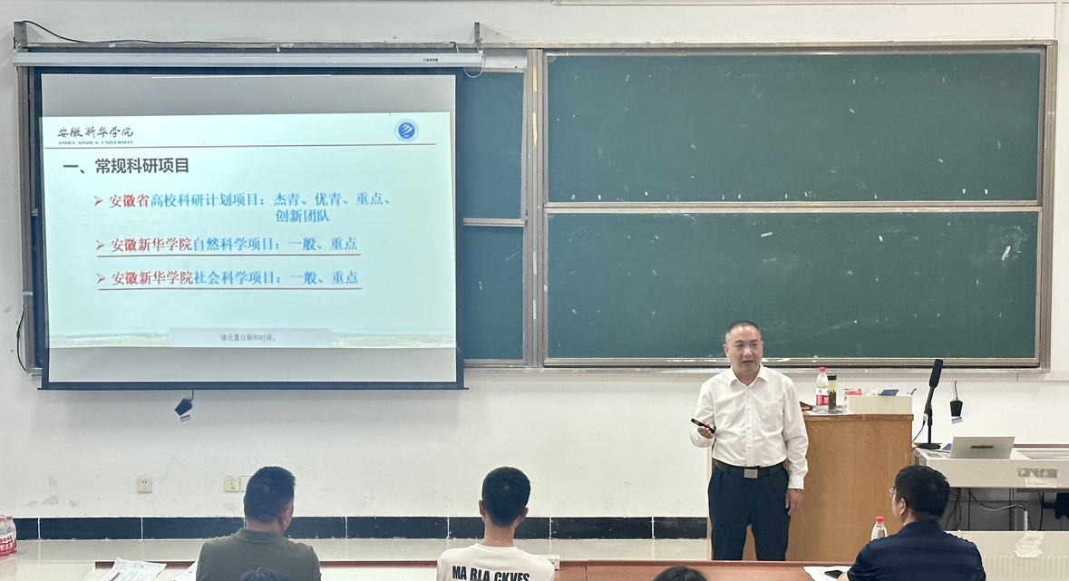 本网讯(通讯员:徐玉珊)为了进一步提升教师团队的科研能力,提高校级科研项目的申报成功率,大数据与人工智能学院于9月13日下午开展了校级科研项目申报专题讲座。本次讲座有幸邀请到安徽省数学会理事、安徽省教学名师、beat365在线体育官网登录入口科技处副处长(主持)邱国新教授,为大数据与人工智能学院全体教师及电子工程学院/智能制造学院部分教师代表开展了一场关于“如何撰写校级科研项目申报书”的指导讲座。
