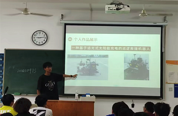 “西门子杯”中国智能制造挑战杯赛一等奖获得者李国兴同学从自身参赛经历出发,围绕学习经验、善用学术工具、团队合作方面等进行了丰富的交流与分享,引导新生们主动学习、兴趣学习、效率学习。
